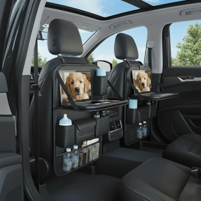 Foldable Backseat Organizer Tray With Multiple Pockets, Tablet/Laptop Holder And Cup Holders, Universal Seat Back Protector For SUV And Sedan, Black Car Travel Accessory And Gift - General Purpose - View 1