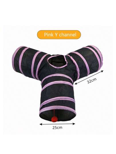 Foldable Cat Tunnel, Indoor Cat Tunnel, Cat Play Tunnel, Interactive Toy Maze Cat House, Cat Game, Kitten, Puppy, Rabbit (Pink And Black) - Black - View 1