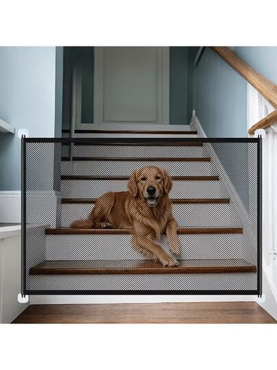 Foldable Pet Safety Fence Suitable For Cats And Dogs - No Need For Drilling Installation, With Hooks, Adjustable Height, Sturdy Mesh Barrier, Portable And Lightweight Design Suitable For Home Use, Stairs And Doorways, Durable Indoor And Outdoor Pet Fence, Reinforced Hooks, Ideal Choice For Cat And Dog Owners - Multicolor - View 1