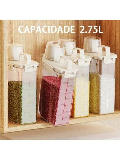 Review: Gostei MUITO desse produto! Veda bem, é bonito e com um bom material, fora as medidas no corpo e na tampa do pote que facilitam e muito para medir os alimentos.
