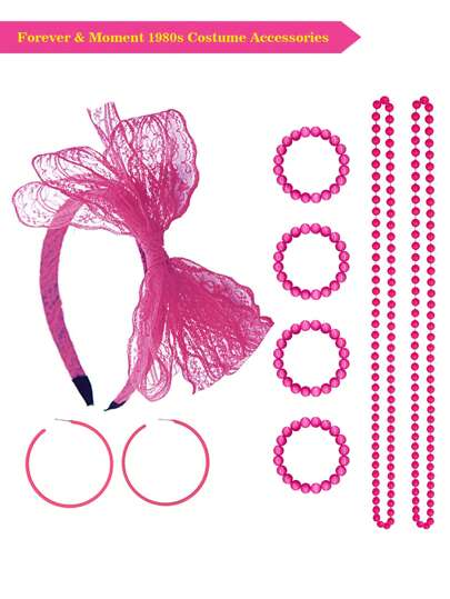 Forever & Moment 8 PCS 1980s Costume Accessories Set For Women Faux Pearl Necklace Bracelet Circle Earrings Lace Bow Hairband Weddings Masquerade Festival Decorations Gifts Halloween - Multicolor - View 12