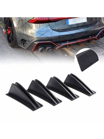 Four Piece Car Modification Universal Rear Spoiler Shark Fin Bumper Chassis Spoiler Split Diffuser Car Decorative Accessories - Black - View 1