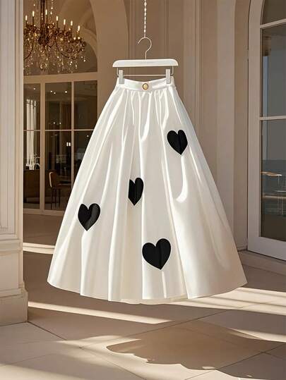 Franclia White Printed High Waist Slimming A-Line Skirt Fall Cloth For Women - White - View 1