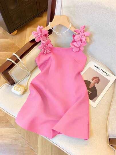Franclia Women's Black 3D Floral Casual Vacation Mini Dress, Spring - Baby Pink - View 1