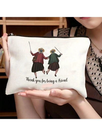 Friendship Gifts For Women, Thank You For Being A Friend Cosmetic Bag, Best Friend Birthday Gifts Makeup Bag, Christmas Graduation Gift For Friend Soul Sister BFF, Travel Makeup Pouch Cosmetic Bag Makeup Storage Makeup Organizer Travel Accessories Brush Bag Make Up Container Travel Stuff Travel Essentials Ladies Accessories Travelling Stuff College Vacation Cruise Summer Holiday Essentials Women Wash Bag Toiletries Bag Handbag Storage - Beige - View 1