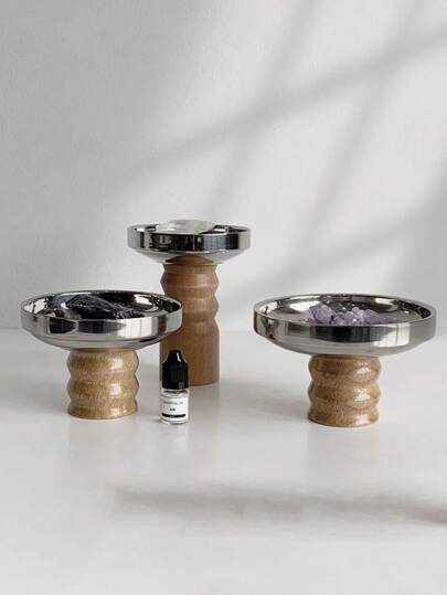 1PC Scandinavian Ins Style Stainless Steel Round Solid Wood Base Tray Living Room Aromatherapy Desktop Organizer Storage Tray Jewelry Tray Christmas Gift - Multicolor - View 11