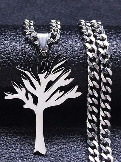 Funky Stainless Steel Tree Of Life Pendant Necklace - Silvery Hollow Design Fashion Accessory - Multicolor - View 1