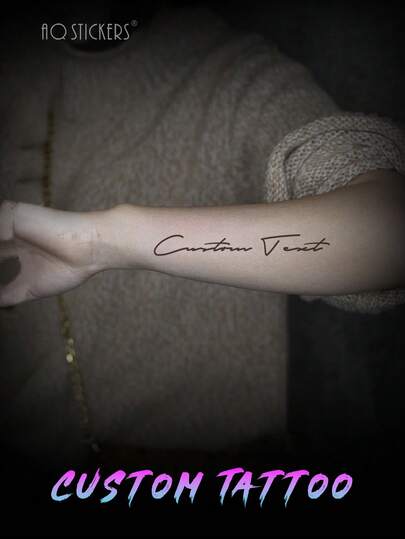 1PSC Customized Black Temporary Tattoo Stickers, Dark Style Tattoo Font - Wedding Celebration Tattoo, Anniversary Tattoo, Proposal Dark Style Tattoo, Cat Theme Tattoo, Pet (Dog/Cat) Memorial Tattoo - Multicolor - View 1
