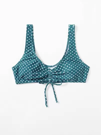 Polka Dot Drawstring Bikini Top - Blue - View 5