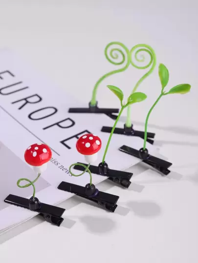 6pcs Mushroom & Plant Decor Hair Clip Cute, Hair Accessories, Hair Barrettes Hair Clips Claw Clips Hair Claws, Head Accessories - Multicolor - View 6