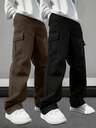 1pc Men's Solid Color Multi-Pocket Cargo Pants, Casual Summer Beach Vacation Pants, Daily Commute, Sports, Outdoor, Loose Fit Leisure Fashion Sweatpants, Versatile Straight Leg Trousers, Fall