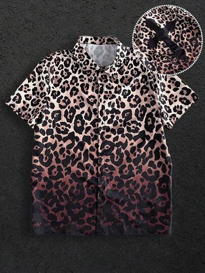 GENTILAND Men's Casual Ombre Leopard Print Button Front Short Sleeve Shirt, Summer Animal Print Men Shirt Mens Vaca Shirts Men Leopard Shirt Double Sided Printing 220 Shirt Cow Print Shirt - Multicolor - View 1