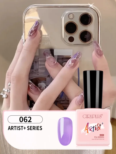 GIRL PLUS GIRLPLUS Purple Gel Nail Polish, 8ml Semi Transparent Iris Ice Purple Glitter Gel Oil, Shiny Translucent Color 062, UV Curing Nail Art DIY - Purple - View 1