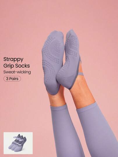 GLOWMODE 3 Pairs Yoga & Pilates Non-Slip Grip Socks With Seamless Toe Construction Yoga Daily - Light purple - View 1