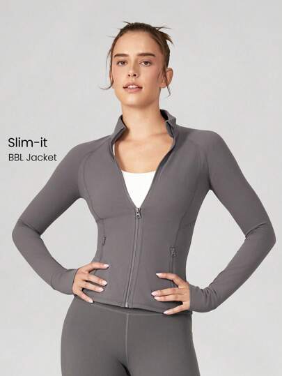 GLOWMODE FeatherFit™ Slim-It Streamline Performance Secure Pockets Zip Up Long Sleeve Jacket Low Impact Yoga Daily Fall - Volcanic Gray - View 1