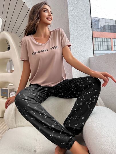 Galaxy & Letter Graphic PJ Set - Multicolor - View 1