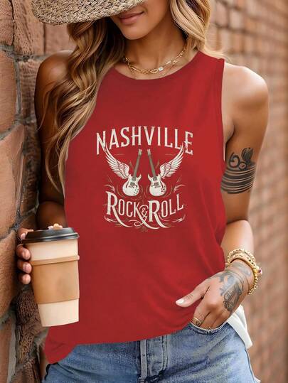 GUITARS NASHVILLE Rock Roll Women's Vest - Red - View 1
