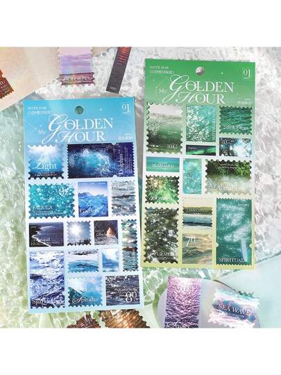 1pc Dreamy Photography Stamp Decor Stickers For Scrapbooking, Exquisite Stamp-Shaped Glitter Die-Cut Stickers Craft Supplies - Multicolor - View 14