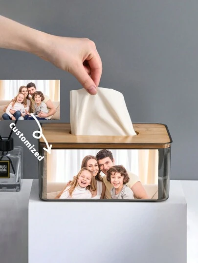 1pc Customized Photo DIY Pattern Creative Paper Box DIY European Desktop Storage Box Household Wooden Napkin Tissue Box Multifunctional Storage Box, Suitable For Holiday Gifts Mother's Day/Father's Day/Thanksgiving/Teacher's Day/Valentine's Day Gifts, Suitable For Office, Bathroom, Bedroom, Living Room, Tea Room, Coffee Table, Living Room, Outdoor, Car And Other Scenes Back To School - Multicolor - View 1