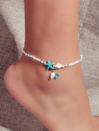 1pc Handmade Beaded Bohemian Style Adjustable Anklet, Summer Beach Foot Jewelry Sandal Accessory - Multicolor - View 1