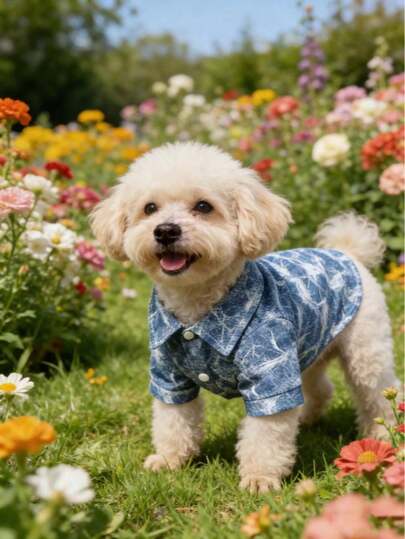 Gentleman Casual Bow Tie Stylish & Cute Multi-Color Denim Shirt For Small , Suitable For All Seasons, Anti-Shedding, Ideal For Cats, Chihuahua, Poodle, Party & Holiday Outfit - Multicolor - View 1