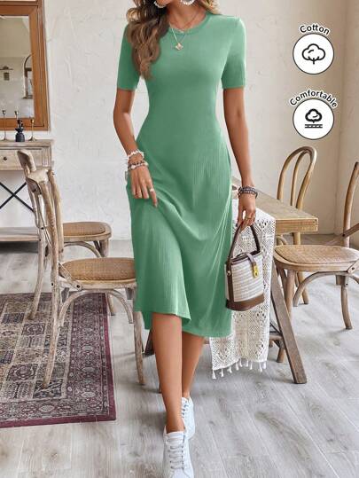 SHEIN Frenchy Women's Casual Crew Neck Short Sleeve Black Maxi Dress, Summer,Summer Dresses For Women Green Christmas - Green - View 1