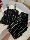 Sparklyn Tween Girl Polka Dot Print Ruffle Hem Camisole And Pants Set