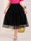 SHEIN Tween Girl Elegant High Waist Plaid Mesh Midi Skirt With Lining, Perfect For Vacation