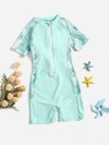 Tween Girl Plant Print Zipper One Piece Swimsuit