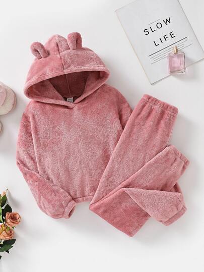 Girls 3D Ear Design Hooded Lounge Set - Pink - View 1