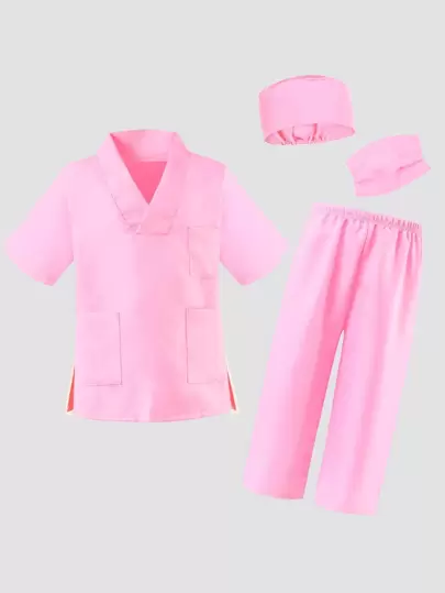 Girls' Doctor Costume Set With Hat And Face Mask - Baby Pink - View 1