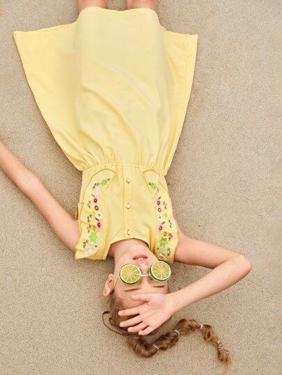 SHEIN Girls Embroidery Floral Ruffle Detail Dress - Yellow - View 1