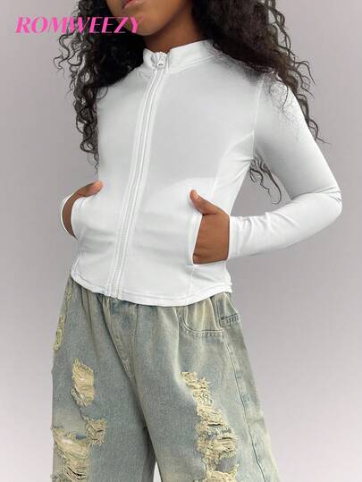 Girls' Fitted Cropped White Jacket, Casual Fall Winter - White - View 1