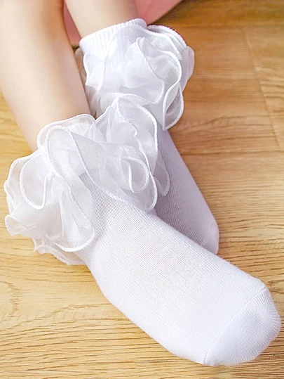 Girls Lace Trim Breathable Socks - White - View 1