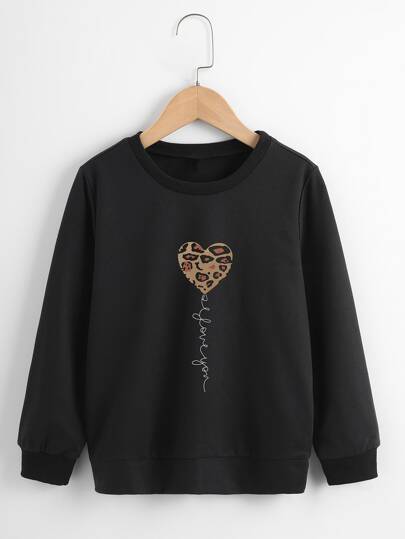 Girls Leopard And Heart Print Pullover - Black - View 1