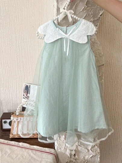 Girls Light Sleeveless Mesh Dress, Spring/Summer - Green - View 1
