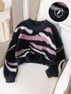 Girls' Street Style Leopard Print Short Sweater, Faux Fur Knitted Pullover Long Sleeve, Suitable For Casual Wear In Spring, Autumn And Winter