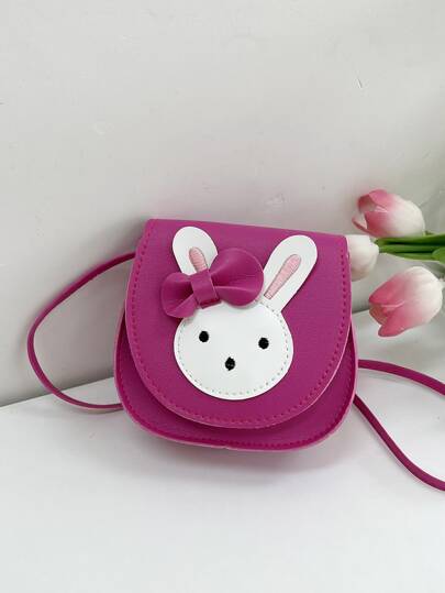 Girls Rabbit & Bow Decor Flap Saddle Bag - Hot Pink - View 1