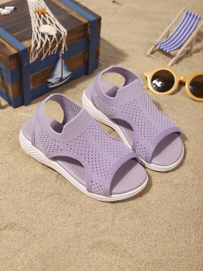 Girls' Sports Sandals Summer New Round Toe Woven One-Piece Multi-Color Design Anti Slip Fashionable And Generous Children's Flat Bottomed Beach Sandals - Purple - View 1