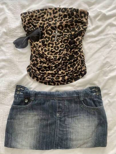 Glimmora Fitted Women's Leopard Print Ruched Bandeau Top - Multicolor - View 1