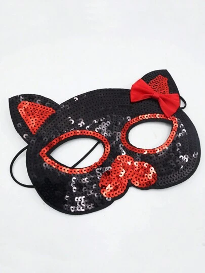 Glittering Eye Mask Accessory For Party & Ball Costume Decoration, Lovely Cat Face & Bow Knot Design - Red - View 1