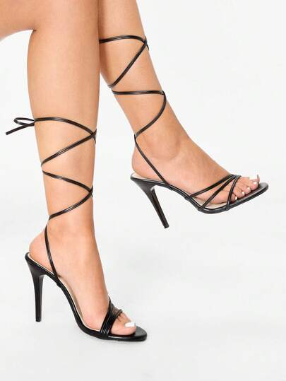 Glitzique Midnight Black High Heel Sandals | Square Toe Genuine Leather High Heels With Non-Slip Criss-Cross Straps | VIP Nightclub Limited Edition Footwear - Black - View 1