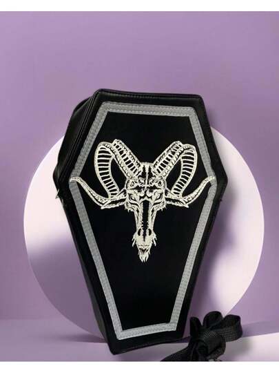 Goat Designed Coffin-Shaped Backpack/Bag, With Adjustable And Detachable Shoulder Strap, School Backpack - Black - View 1