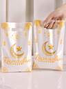 50/100pcs Eid Mubarak Transparent Gift Packaging Bags With Star Moon & Flowers Patterns Self-Adhesive Treat Bags, Ramadan Party Supplies, Perfect For Eid Al-Fitr Present Packaging