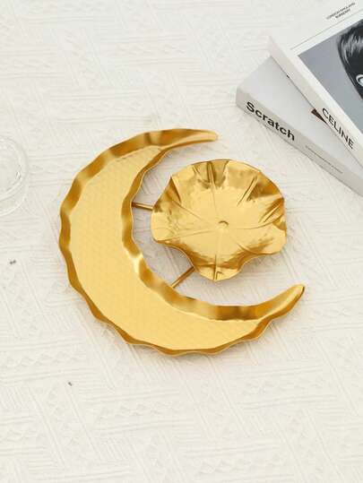 Gold Star & Moon Tray, Fruit & Snack Holder, Home Decor Serving Platter - Gold - View 1