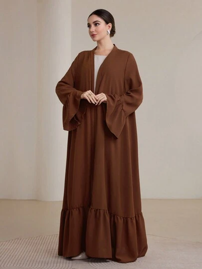Graceveil Women's Solid Color Long Sleeve Simple Pleated Loose Arabic Abaya Modest - Brown - View 1