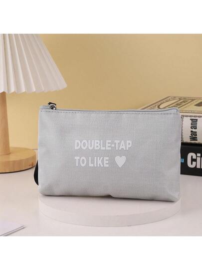 Gray Letter Print Cosmetic Bag - Grey - View 1