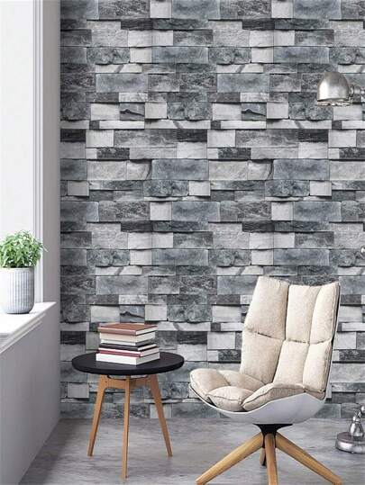 Grey Brick Wallpaper Peel And Stick Wallpaper Stone Wallpaper, Self Adhesive Removable Vintage Brick Wall Paper Faux Textured Wallpaper Home Decoration, Renovation Stickers Peel Wall Panels, Wall Paper, Wallpapers, Spring Decoration Items Refresh Your Home, Rama Decoration Stickers Gifts Birthday Graduation - Grey - View 9