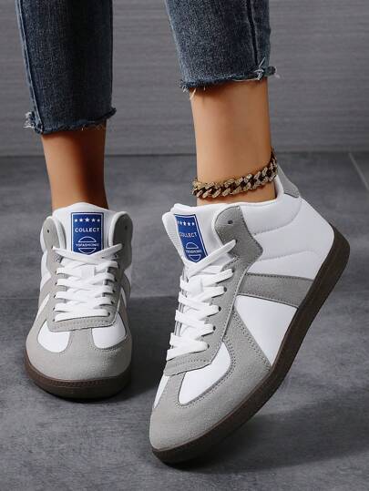 Grey Women's Retro Canvas Shoes Flat Sneakers, Casual Lace-Up Sport Comfort Wear Versatile Vulcanized Rubber Sole Sneakers - Grey - View 1
