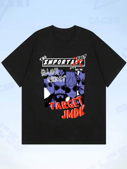 ROMWE MEN Anime Guys Letter & Figure Graphic Tee - Black - View 1
